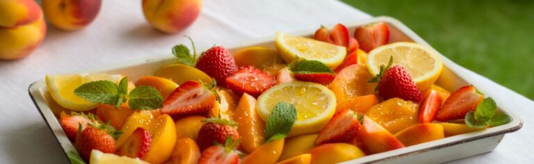 Fragole e albicocche della Basilicata vengono affettate con delicatezza e irrorate con…